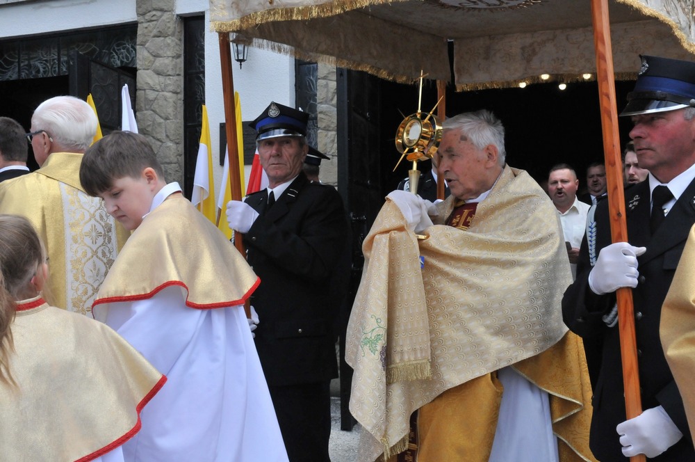 Zanim ruszyła odpustowa procesja wokół świątyni, do diamentowego Jubilata ruszyły delegacje z życzeniami i gratulacjami. Były gliśniańskie Gospodynie i dzieci ze szkoły, strażacy i chórzyści, marszałek gminnego parlamentu i na koniec....sam proboszcz.