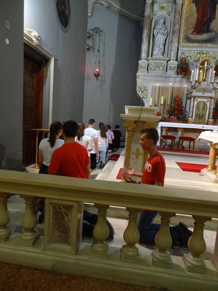 Młodzież, która należy do założonej przed czternastu laty wspólnoty HDM jest poświęcona Sercu Jezusowemu. Pełni radości i z modlitwą na ustach pokonywali dwugodzinną drogę ulicami miasta Zagrzebia. Po przybyciu na miejsce uczestniczyli we Mszy świętej, którą odprawiał ojciec duchowny HDM w Chorwacji – ks. Andrzej Wośko SCJ razem z ks. Arturem Makarą SCJ, który chętnie przyłączył się do pielgrzymkowej grupy. Po Mszy świętej dziękczynnej młodzież HDM na kolanach przeszła wokół głównego ołtarza Serca Jezusowego czyniąc to w duchu wynagrodzenia, podobnie jak to czynił ojciec Dehon. Pod koniec pobytu w bazylice cała grupa zebrała się przy relikwii błogosławionego Jana Merza, patrona młodzieży, odmówiwszy klęcząc siedem Ojcze nasz z rozłożonymi na znak krzyż rękami, podobnie jak to czynią w czasie swoich cotygodniowych spotkań, kiedy modlą się w intencji kanonizacji Jana Merza.