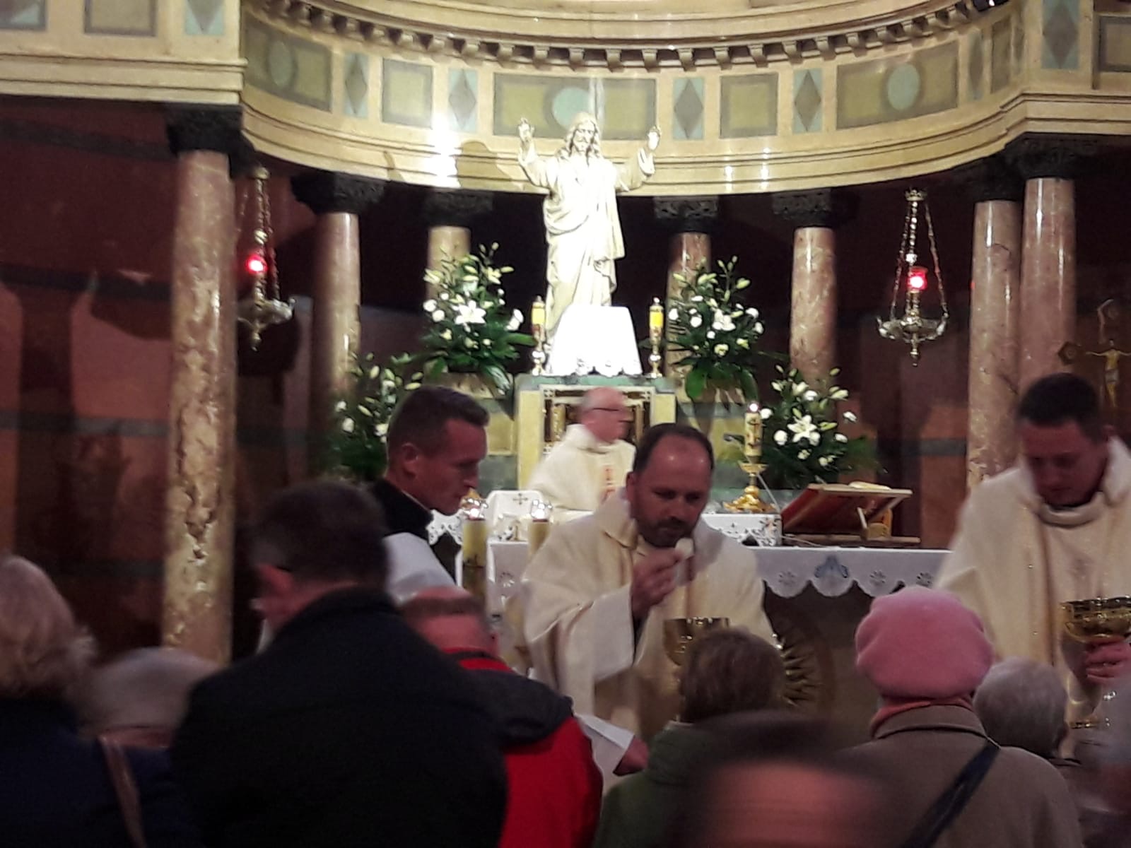 Spotkanie w Bazylice rozpoczęło się od powitania przez ks. Krzysztofa Zimończyka SCJ pielgrzymów przybyłych z różnych stron Polski, z których najliczniejszą grupę stanowili pątnicy pochodzący z Parafii Podwyższenia Św. Krzyża w Sosnowcu wraz z opiekunem, ks. Stanisławem Grucą SCJ, który jest dyrektorem Straży Honorowej w Diecezji Sosnowieckiej. Po powitaniu zostaliśmy oprowadzeni po Bazylice Serca Jezusowego przez ojca Stanisława Gronia SJ, który z wielką pasją opowiedział nam o znajdujących się w świątyni mozaikach, obrazach, rzeźbach i epitafiach, które tworzą jej piękno, a równocześnie podkreślają dziedzictwo i historię naszego Narodu. Punktem centralnym krakowskiego zjazdu była Msza święta, której przewodniczył ks. Krzysztof Zimończyk SCJ. On również wygłosił Słowo Boże. W koncelebrze wzięli udział księża opiekujący się poszczególnymi grupami. Radością dla całego zgromadzenia liturgicznego był moment przyjęcia nowych kandydatów do Arcybractwa Straży Honorowej. Przyrzeczenie trwania przy Sercu Jezusa w wybranej przez siebie godzinie złożyło siedem osób: Janina Masłoń, Halina Staszewska, br. Witold Kuchnio, Sylwia Fields, Renata Bałys-Jaśkiewicz, Beata Bandura oraz Maria Poradzisz. Podczas adoracji Najświętszego Sakramentu wszystkie grupy Straży Honorowej ponownie zostały poświęcone Sercu Jezusa.