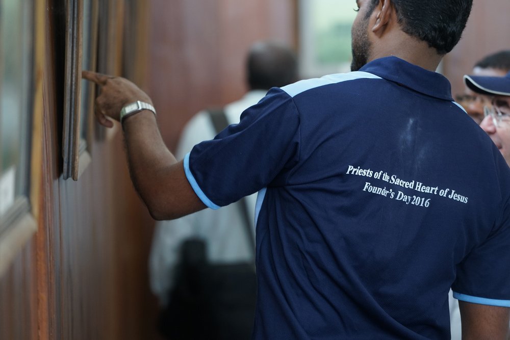 Przed wyjazdem do scholastykatu sercańskiego, gdzie miała zostać odprawiona Msza święta, wszyscy zgromadzili się na prezentacji uczestników seminarium, którzy przybyli ze wszystkich kontynentów. O godzinie 16.oo dwoma autokarami udano się do scholastykatu.
